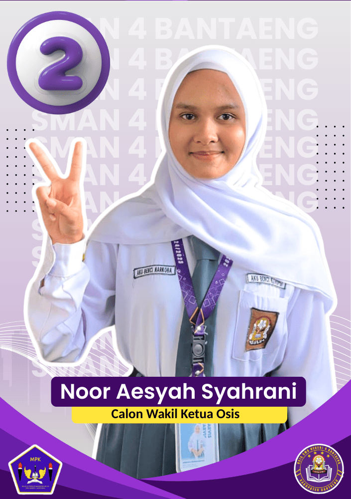 Calon Wakil OSIS [4]Nomor 3 bukan sekadar angka,Mari bersama kita wujudkan OSIS yang aktif, kreatif, dan bermanfaat.
